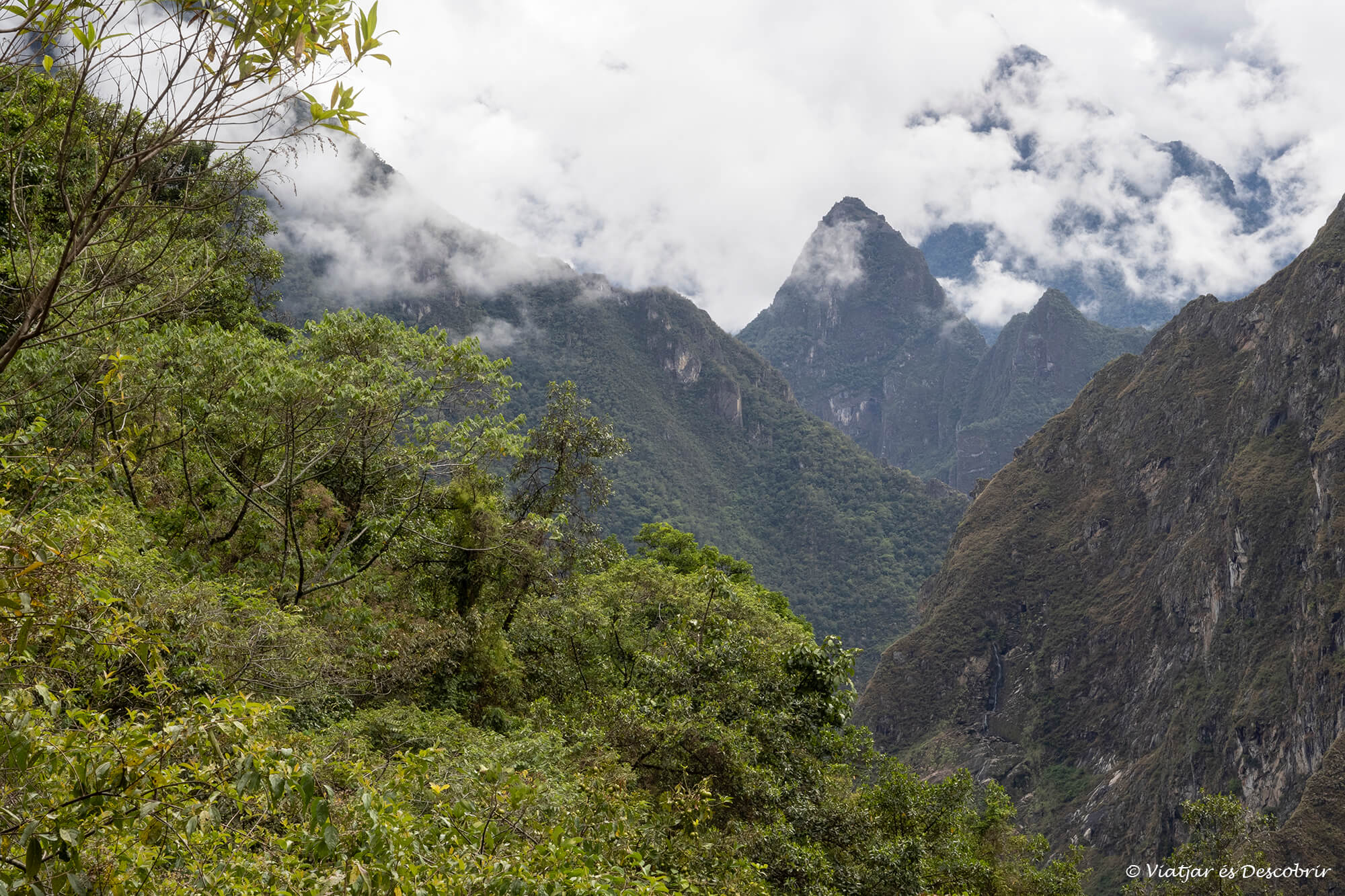 La matinada següent, després d’una nit de molta pluja, llamps i trons, vaig reprendre el camí sota una pluja fina. El cel amenaçava nous ruixats, i jo tenia pressa: volia arribar a Aguas Calientes el més aviat possible per intentar aconseguir una de les preuades entrades per visitar Machu Picchu l’endemà. Vaig enfilar la pujada cap a Llactapata amb bon ritme, avançant excursionistes, mentre notava com suava cada vegada més per la calor i humitat.