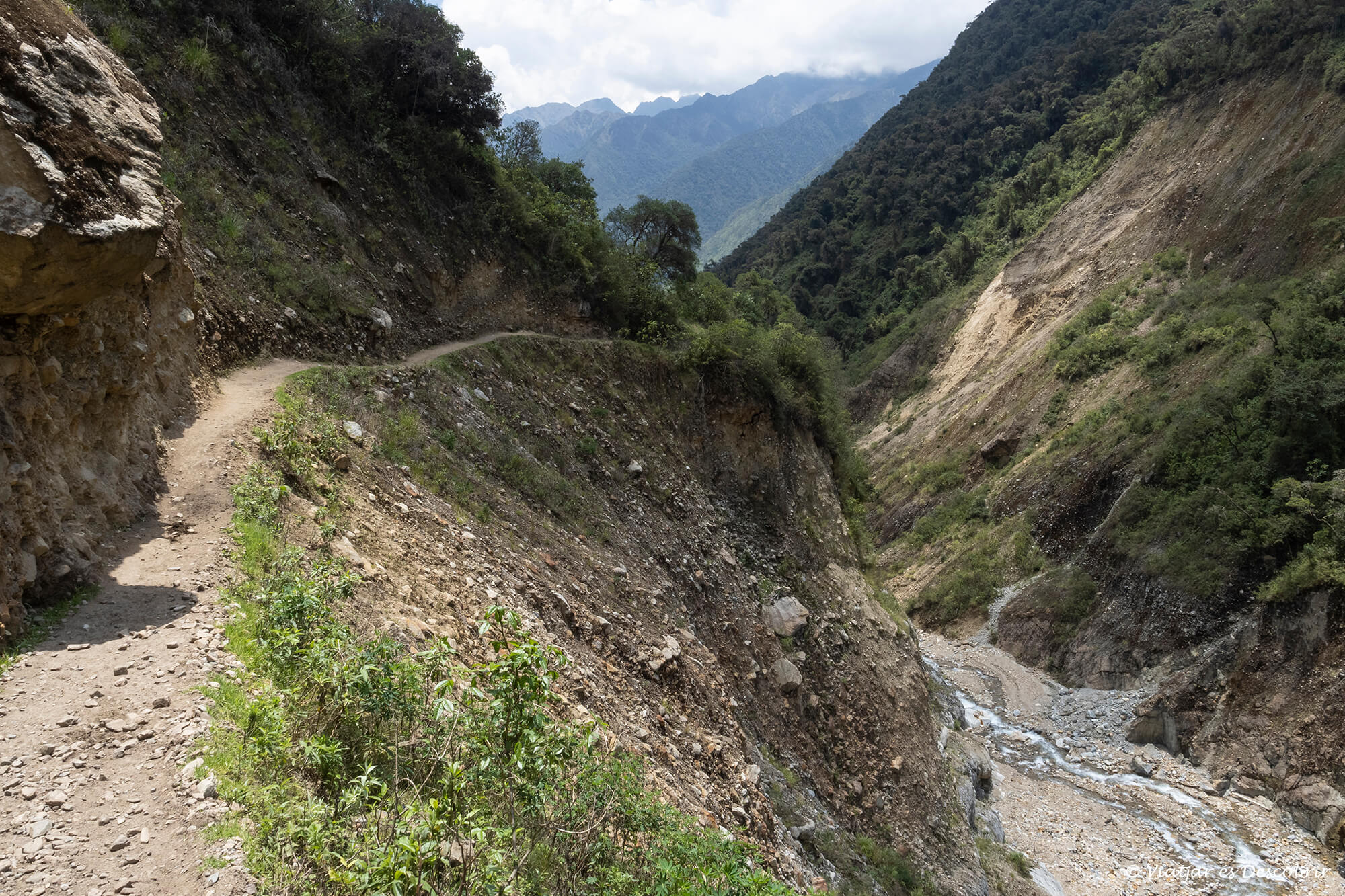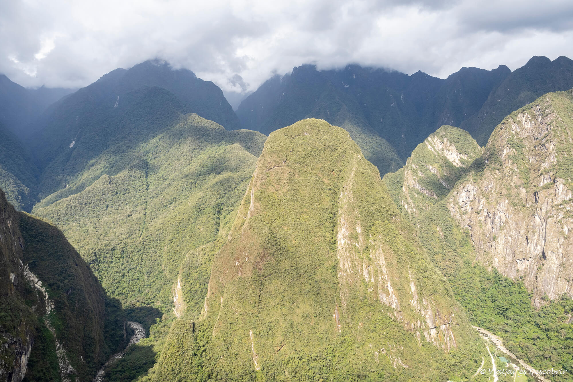 Quan vaig arribar al mirador de Llactapata, encara hi havia una espessa boira. Des d’allà, en dies clars, es té la primera vista de la ciutat sagrada dels inques. Però semblava que jo hauria d’esperar per poder tenir la primera vista del Machu Picchu. Vaig esperar-me durant uns minuts, però veient que el clima no millorava, vaig continuar caminant. M’esperaven quasi 1.000 metres de desnivell negatiu, per arribar fins a la Hidroeléctrica. Una baixada que, tot i el fang, no va ser gaire complicada.