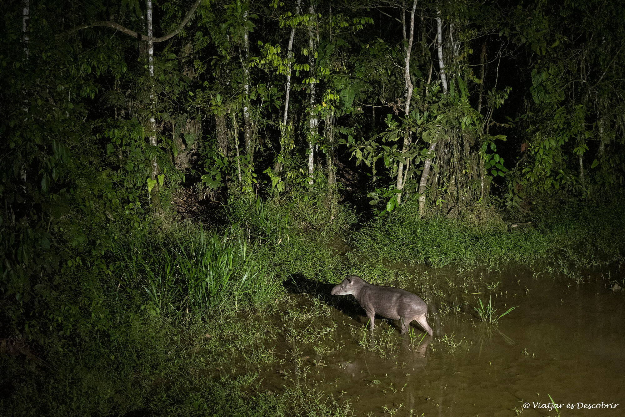 La tornada, tan llarga com l’anada, també em va regalar moments inesperats: capibares descansant a les ribes del riu, un peresós immòbil abraçat a una branca, i, de nit, l’aparició breu de dos tapirs.